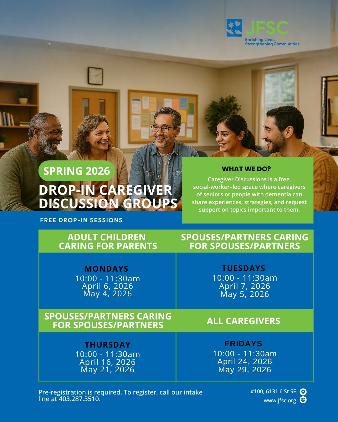 [title] => Caregiver Discussions - In-Person, Drop-In, Support Groups - Spring 2026