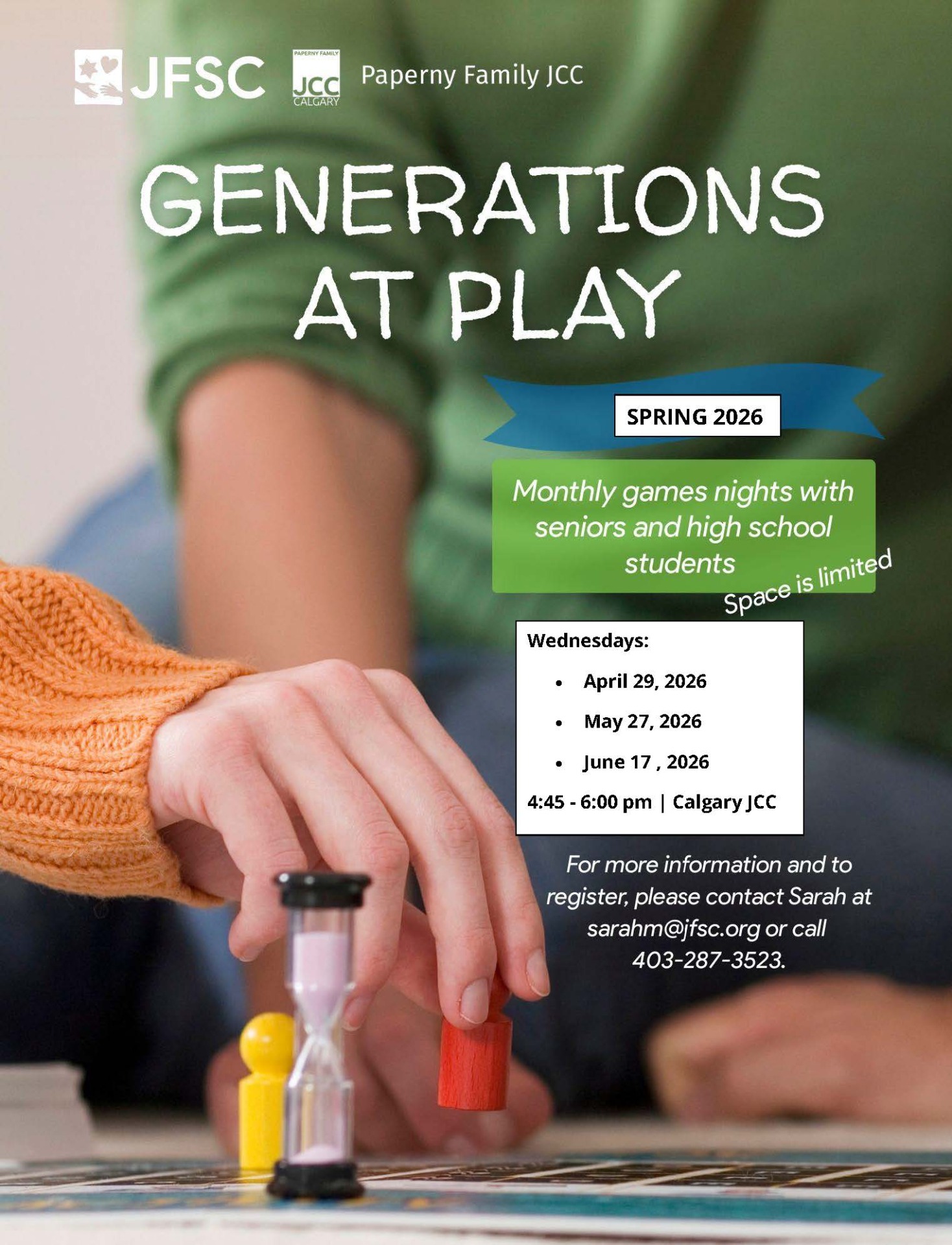 Are you interested in participating? Please register early as space is limited. For more information and to register, please contact Sarah at sarahm@jfsc.org or call 403-287-3523.